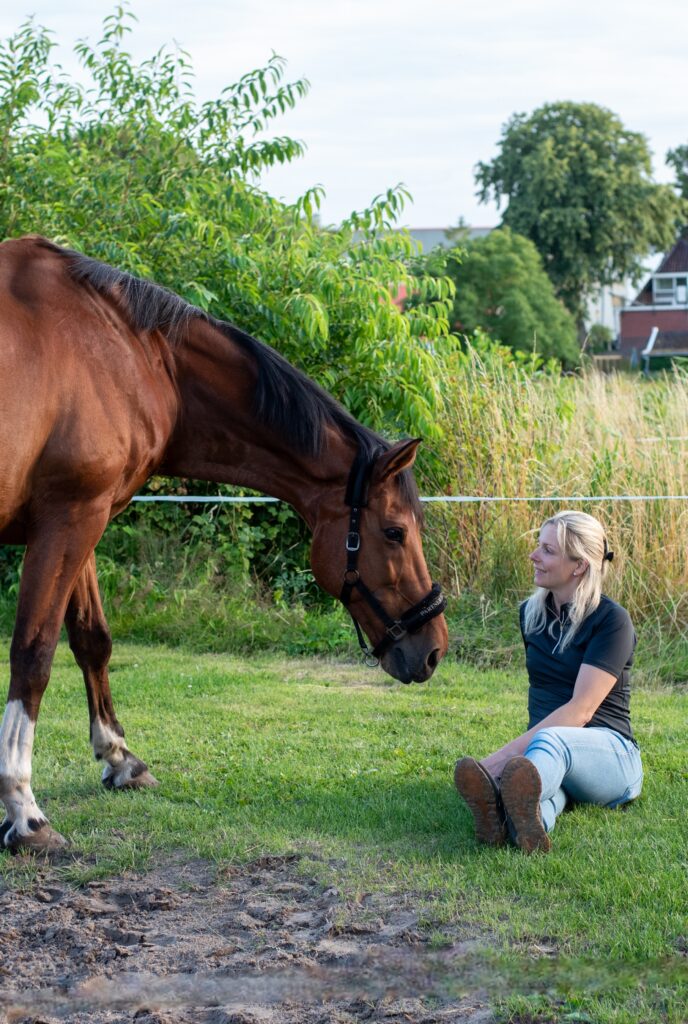 Mijn liefde voor paarden begon al op jonge leeftijd. Op mijn zevende was ik al helemaal verliefd op deze mooie dieren. Na vele pony’s en paarden te hebben verzorgd kocht ik op mijn 27e mijn eerste eigen paard. Omdat hij nog jong was, leerde ik veel over de relatie tussen mens en paard. Één van de belangrijkste lessen voor mij was dat paarden haarfijn aanvoelen wat jij uitstraalt. Toen ik me bewuster werd van mijn eigen houding en meer kon ontspannen, merkte ik direct verschil, ook mijn paard ontspande.